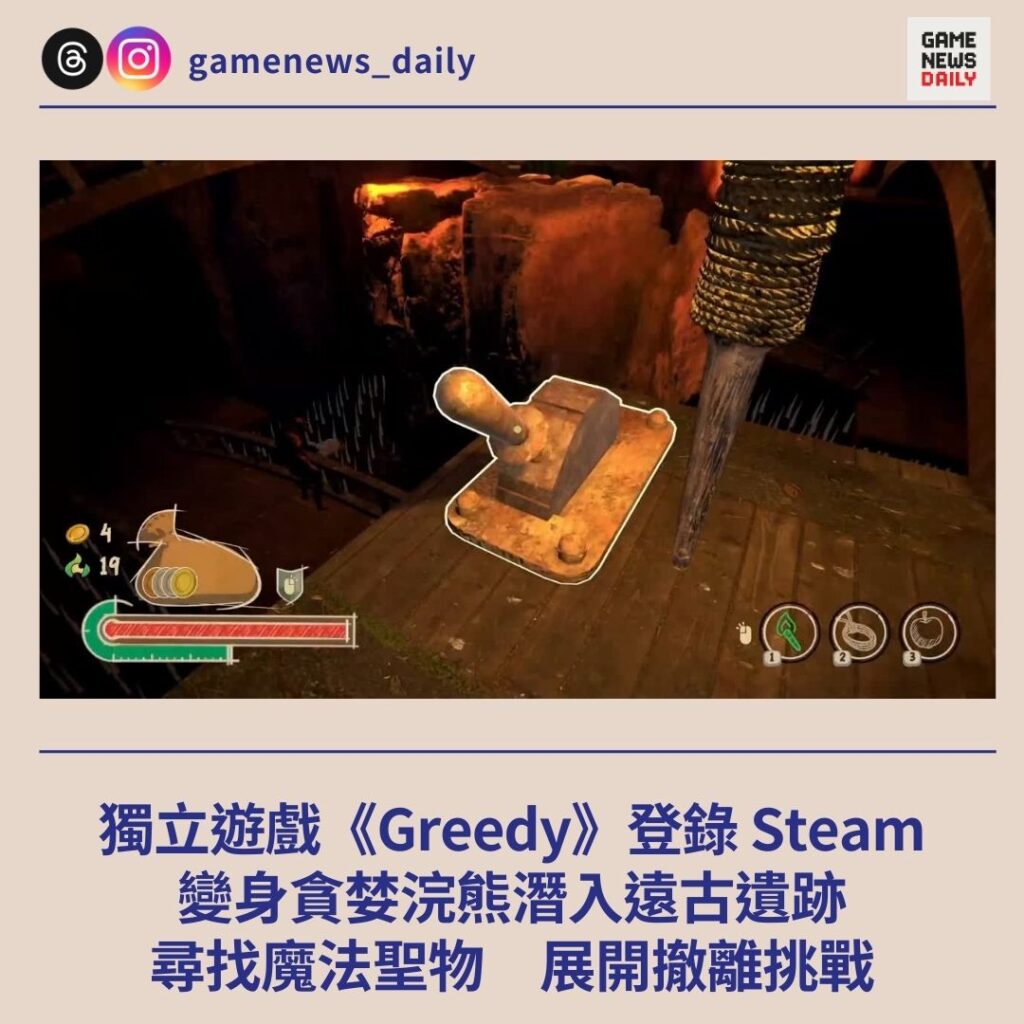 獨立遊戲《Greedy》登錄 Steam 變身貪婪浣熊潛入遠古遺跡 尋找魔法聖物 展開撤離挑戰