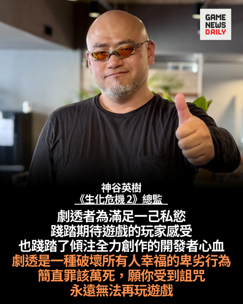 【GameNewsDaily】神谷英樹近日就《生化危機:安魂曲》劇透事件發表強烈言論,直指刻意破壞他人驚喜的人「應該受到千次死亡的懲罰」,並「被詛咒永遠無法再玩遊戲」。他形容有關行為「是摧毀所有人幸福…