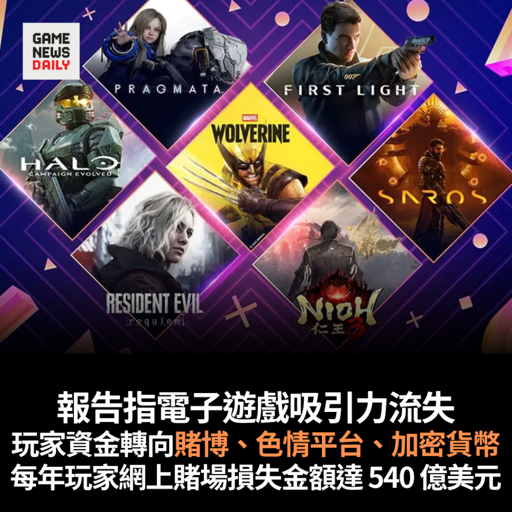 報告指電子遊戲吸引力流失 玩家資金轉向賭博、色情平台、加密貨幣 每年玩家網上賭場損失金額達 540 億美元