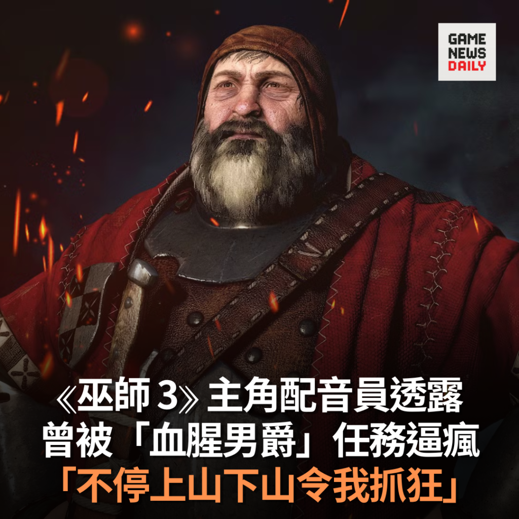 《巫師 3》主角配音員透露曾被「血腥男爵」任務逼瘋 「不停上山下山令我抓狂」