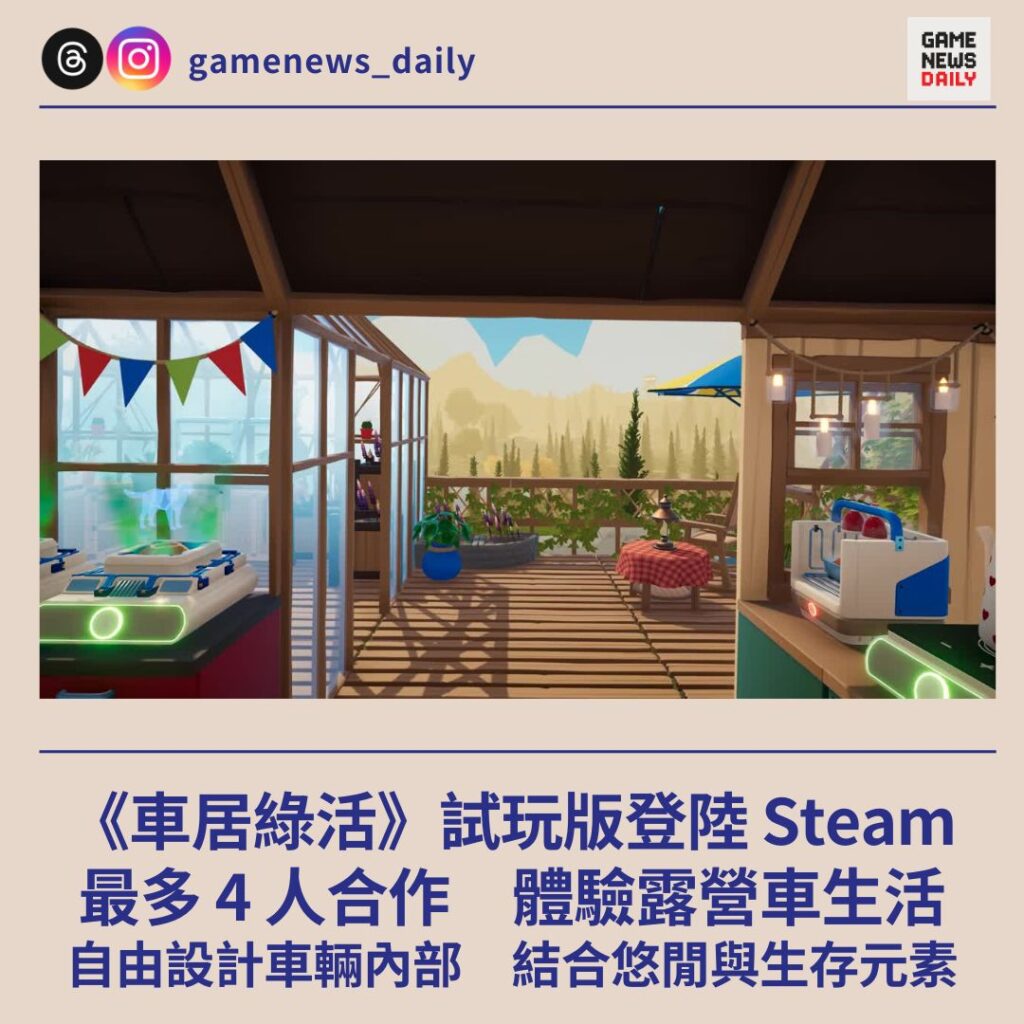 【GameNewsDaily】《車居綠活》(Outbound)試玩版近日已於 Steam 平台推出,支援最多 4 人線上合作遊玩,讓玩家率先體驗以露營車展開的慢活冒險旅程。 作品以廣闊自然為舞台,玩家…