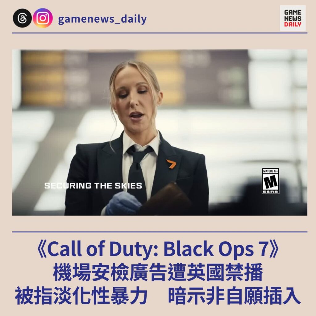 《Call of Duty: Black Ops 7》機場安檢廣告遭英國禁播 被指淡化性暴力 暗示非自願插入