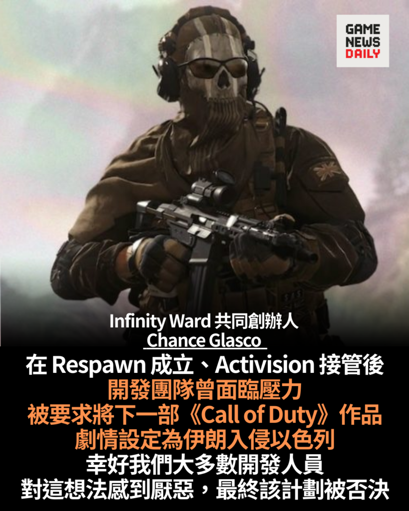 【GameNewsDaily】《Call of Duty》系列開發商 Infinity Ward 共同創辦人 Chance Glasco 近日表示,遊戲系列開發期間曾經出現關於劇情方向的爭議,涉及將現…