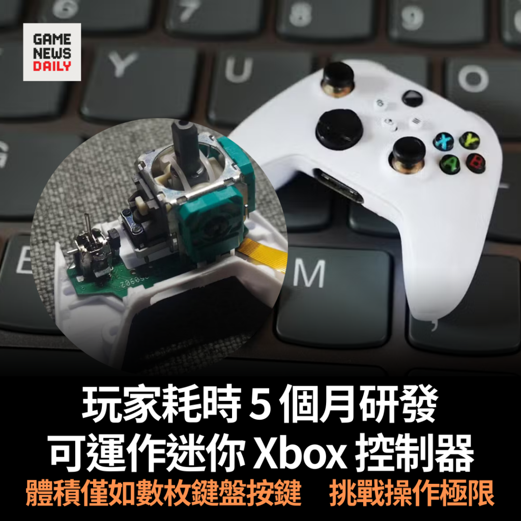 玩家耗時 5 個月研發可運作迷你 Xbox 控制器 體積僅如數枚鍵盤按鍵 挑戰操作極限