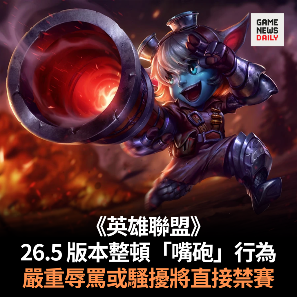 【GameNewsDaily】《英雄聯盟》開發團隊宣布將於 26.5 版本起,針對遊戲內聊天系統的嚴重辱罵行為採取更嚴厲的處分措施。 官方指,過去一年來持續嚴懲破壞遊戲體驗的不良行為,包括故意送頭、惡…