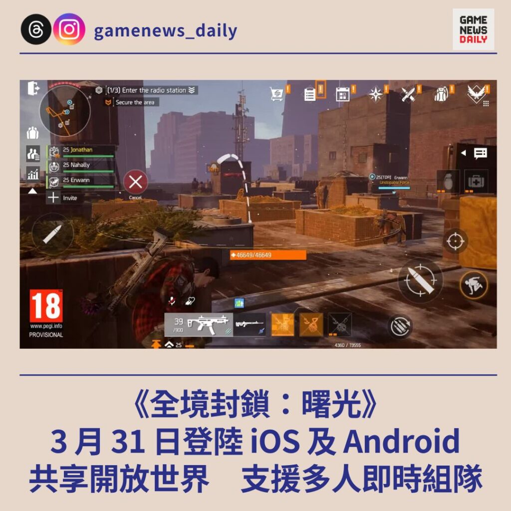 《全境封鎖:曙光》3 月 31 日登陸 iOS 及 Android 共享開放世界 支援多人即時組隊