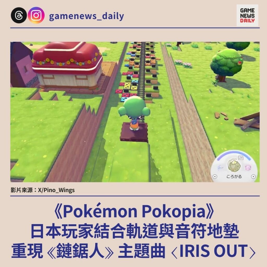 【GameNewsDaily】《Pokémon Pokopia》一名日本玩家「ピノの羽(Pino no Hane)」利用遊戲內的音符地墊、感應裝置與軌道機關,重現動畫《鏈鋸人 蕾塞篇》主題曲〈IRIS…