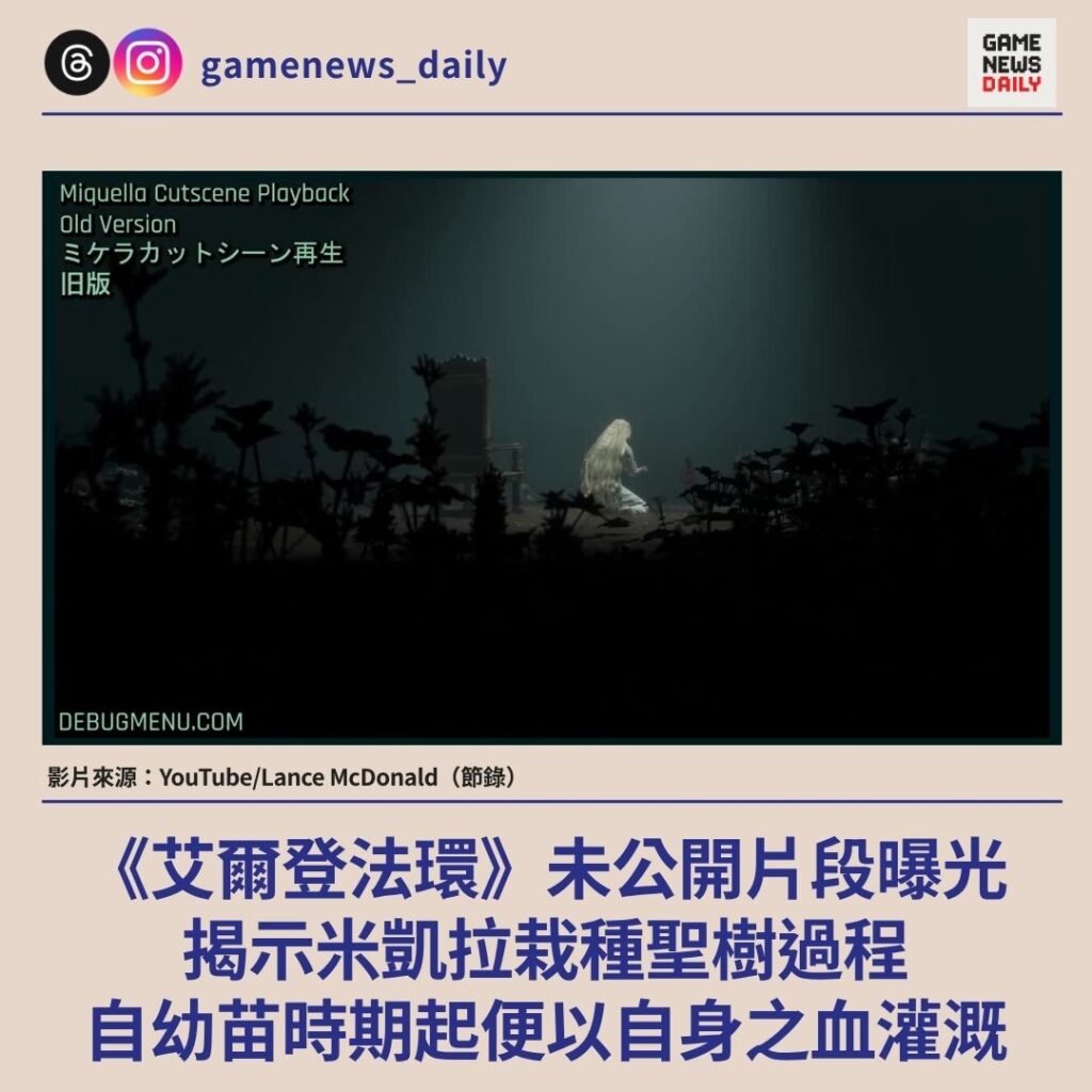 【GameNewsDaily】《艾爾登法環》近日再有未公開內容曝光,一段從未公開的刪減過場片段被發現,內容顯示角色米凱拉種植聖樹的場景。知名資料挖掘者 Lance McDonald 公開一個全新發現的…
