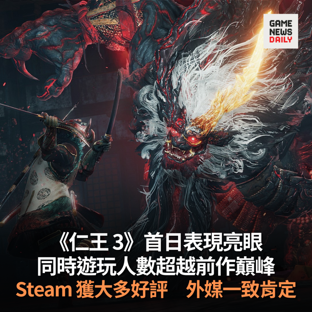 【GameNewsDaily】《仁王 3》正式推出後不足數小時,已於 Steam 平台創下系列新高的同時在線玩家紀錄。遊戲推出後約 5 小時內,便有超過 22,000 名玩家同時於 Steam 平台啟動遊戲。