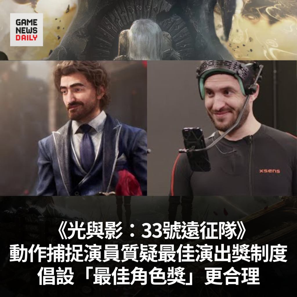 《光與影:33號遠征隊》動作捕捉演員質疑最佳演出獎制度 倡設「最佳角色獎」更合理