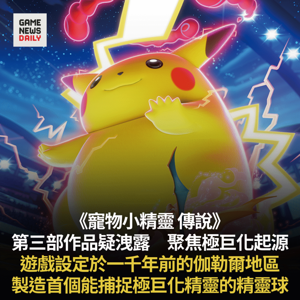 【GameNewsDaily】《寵物小精靈》系列的最新洩漏資料顯示,Game Freak 正開發《寵物小精靈 傳說》系列的第三部作品,背景設定於《劍/盾》舞台——伽勒爾地區(Galar)的一千年前。根據洩漏文件內容,故事將圍繞極巨化現象的起源,玩家在遊戲中將製造出首個能捕捉極巨化精靈的精靈球。