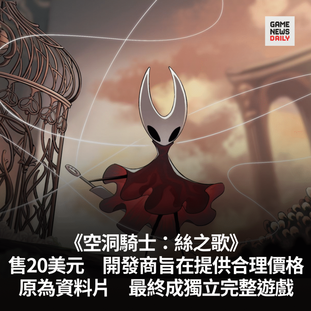 【GameNewsDaily】耗時超過六年製作的《空洞騎士:絲之歌》定價 20 美元,僅比前作《空洞騎士》貴 5 美元,早前推出時深受玩家讚賞。