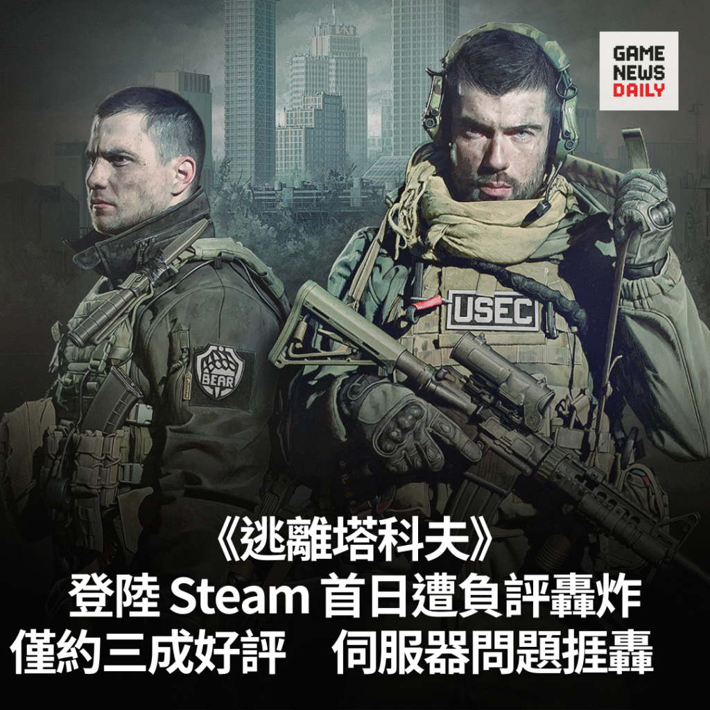 【GameNewsDaily】多人連線射擊遊戲《逃離塔科夫》登上平台 Steam 推出 1.0 版本僅一日後,在該平台遭遇大規模負評轟炸,在截稿前僅有 29% 給予好評,評價為「大多負評」。