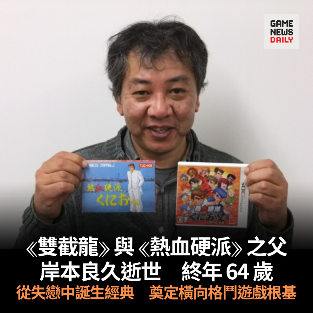 【GameNewsDaily】著名遊戲製作人岸本良久 4 月 2 日離世,享年 64 歲。他作為動作過關遊戲的奠基者,在業界的影響力極為深遠,其開發的作品影響了無數後世經典,創作的街機熱門作品《熱血硬派國夫君》不僅發展成《熱血硬派》及《雙截龍》兩個長青系列,對橫向捲軸格鬥遊戲的發展貢獻良多。