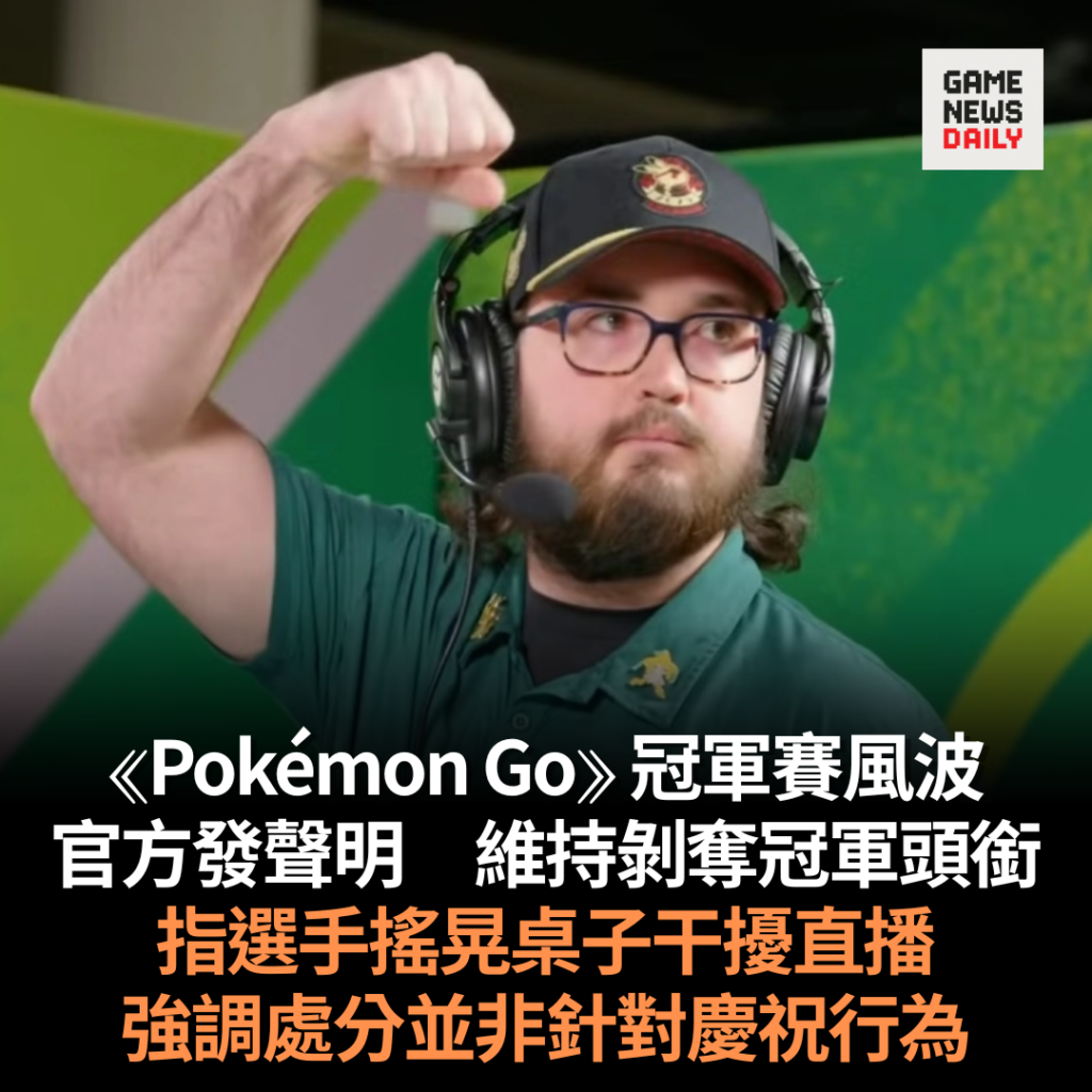 《Pokémon Go》冠軍賽風波 官方發聲明維持剝奪冠軍頭銜 指選手搖晃桌子干擾直播 強調處分並非針對慶祝行為