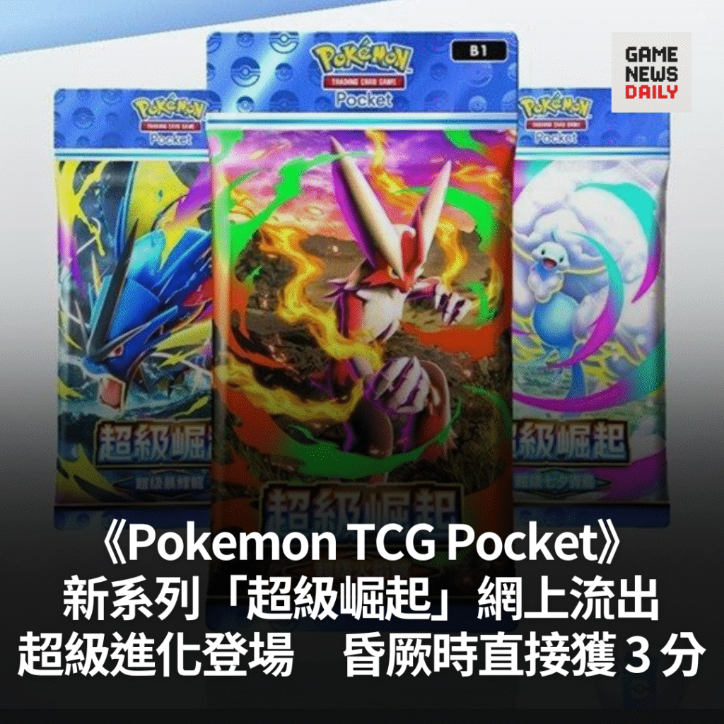 【GameNewsDaily】《Pokemon TCG Pocket》近日流出新截圖,顯示即將登場新系列「超級崛起」,分為三包推出,包括「超級鯉魚龍」、「超級火焰雞」及「超級七夕青鳥」等卡牌。有網民指,有關截圖一度出現在官方網站,惟現時官網則未有相關圖片。