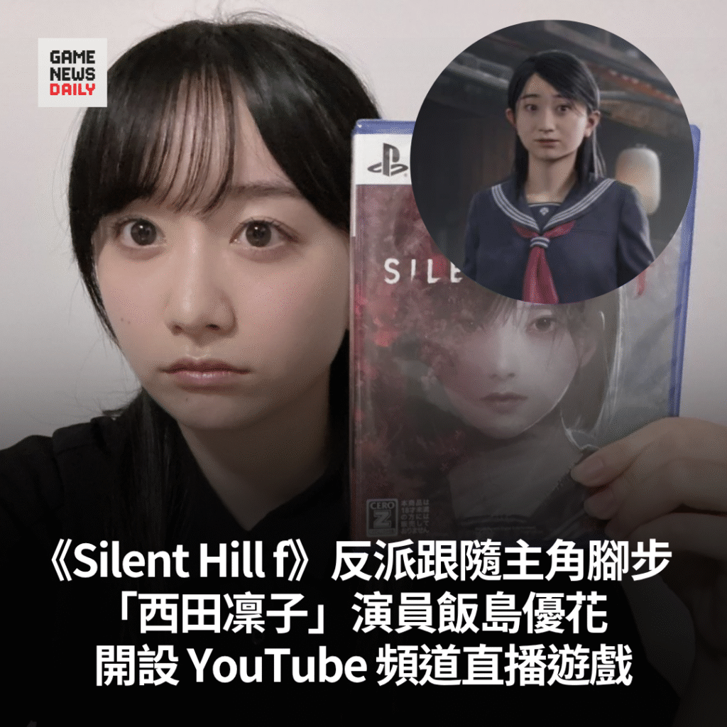 【GameNewsDaily】日本女演員飯島優花宣布開設 YouTube 頻道,並將於 11 月 22 日晚上直播遊玩《Silent Hill f》。她在遊戲中飾演反派「西田凜子」。