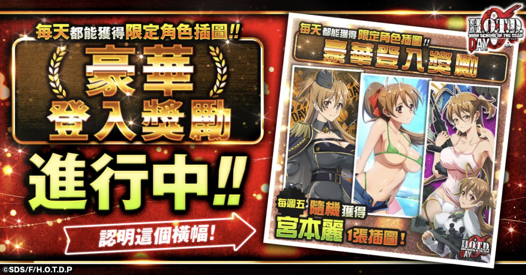 本作是以2010年播出的經典動畫『學園默示錄 HIGH SCHOOL OF THE DEAD』為題材的全新網頁遊戲。