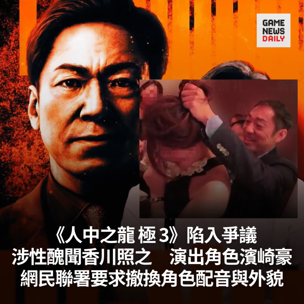 【GameNewsDaily】日本遊戲《人中之龍 極 3》近日陷入爭議,不少系列粉絲呼籲抵制,原因是遊戲邀請了曾涉及性騷擾醜聞的演員香川照之,參與角色「濱崎豪」配音與外貌重塑。