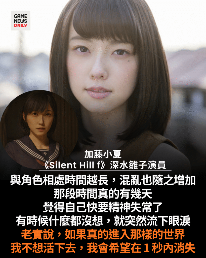 【GameNewsDaily】《Silent Hill f》自 9 月 25 日發售以來,在日本及海外均獲高度關注。飾演主角深水雛子並擔任臉部與動作捕捉演出的加藤小夏早前接受《Fami通》訪問,談及拍攝時的心路歷程。