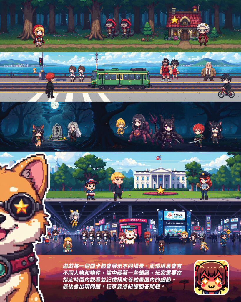 【GameNewsDaily︱特約內容】在短影片與AI工具日益普及的年代,「用腦」似乎成了一件需要刻意練習的事。香港獨立遊戲團隊 Lionrock Studio 推出的手機遊戲《SUPER FOCUS:超腦力》,正是從這個需求切入:以像素風橫向卷軸場景,迫使玩家在有限時間內觀察、記憶,再回答細節問題。玩法看似簡單,實際卻能把「專注力、記憶力、動態視力」推到極限;也因此,遊戲在海外市場取得亮眼成績,累積下載量突破十萬,曾登上台灣益智遊戲排行榜第一、日本益智排行榜第二。