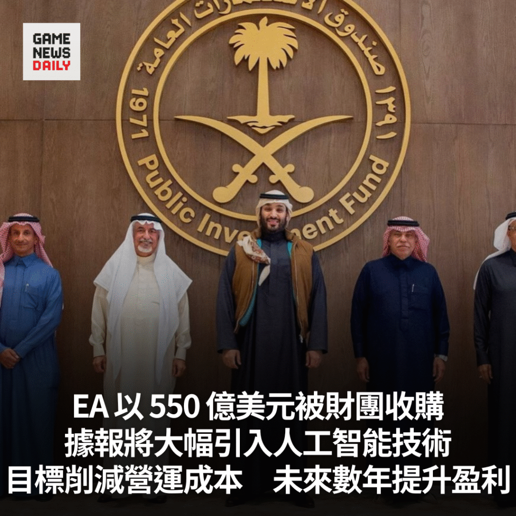 【GameNewsDaily】美國遊戲公司 Electronic Arts(EA)早前宣布,將以 550 億美元出售予由沙特阿拉伯公共投資基金(PIF)、美國私募基金 Silver Lake 及美國總統 Donald Trump 的女婿 Jared Kushner 所屬的 Affinity Partners。