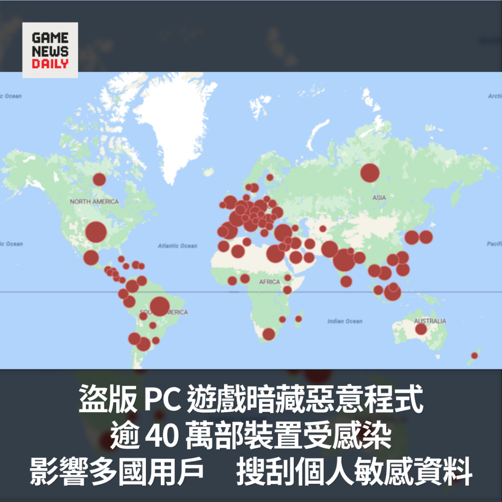 盜版 PC 遊戲暗藏惡意程式 逾 40 萬部裝置受感染 影響多國用戶 搜刮個人敏感資料