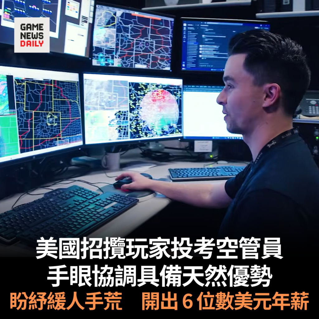 【GameNewsDaily】美國聯邦航空管理局把電子遊戲玩家列為新一輪空中交通管制員招聘重點,盼透過鎖定熟悉螢幕操作、反應迅速及具手眼協調能力的年輕人,填補全國空管人手不足的缺口,並以年薪可達 6 位數作招徠。