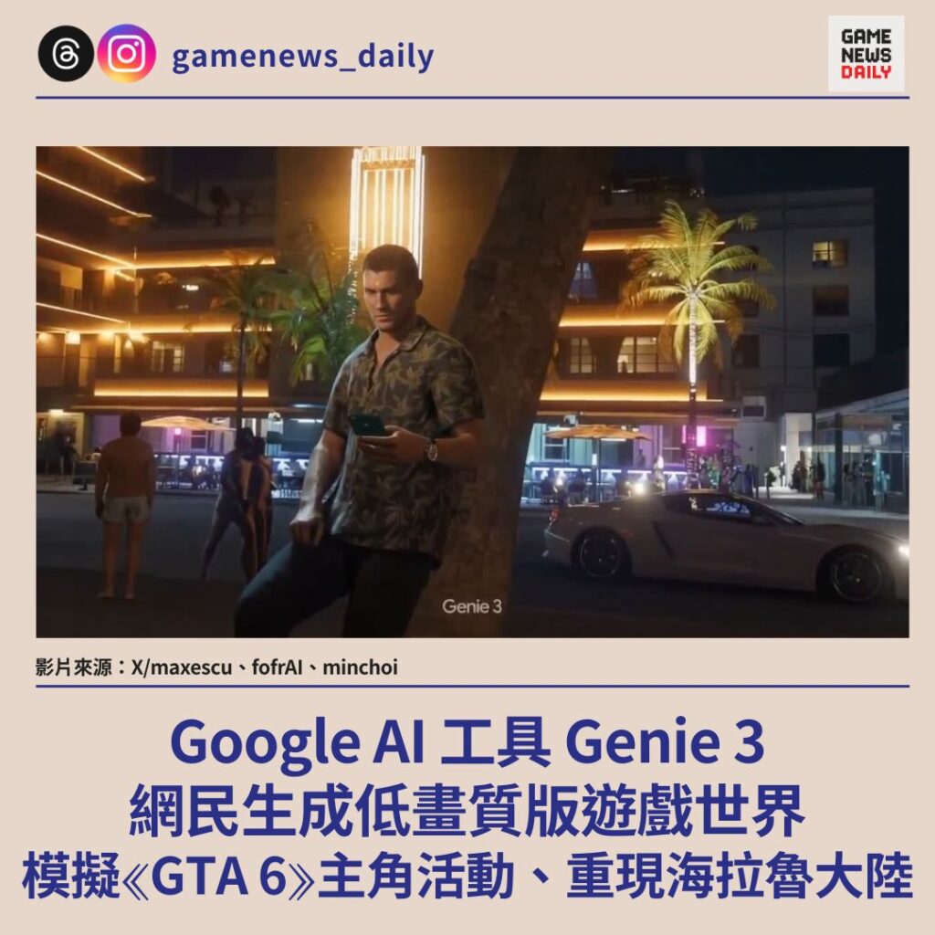【GameNewsDaily】Google 近期推出名為 Genie 3 的人工智能工具,這款軟件能根據簡單的