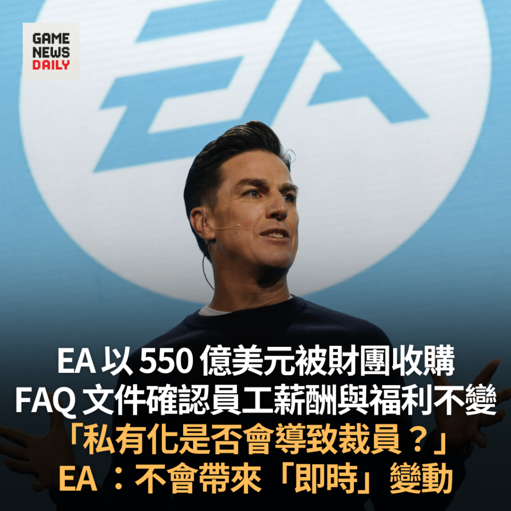 【GameNewsDaily】全球遊戲巨企 Electronic Arts(EA)近日向全體員工發佈一份內部常見問題文件(FAQ),內容已在美國證券交易委員會(SEC)公開。FAQ 中針對「私有化是否會導致裁員」一問,EA 回應稱「這項交易不會對你的工作、團隊或日常工作帶來即時變動。」