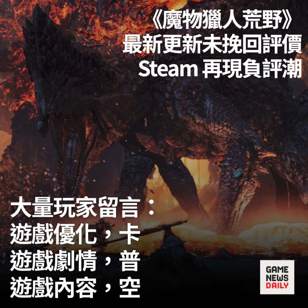 《魔物獵人荒野》最新更新未挽回評價 Steam 再現負評潮 大量玩家留言「卡普空」