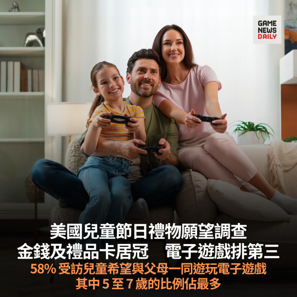 美國兒童節日禮物願望調查 金錢及禮品卡居冠 電子遊戲排第三 58% 受訪兒童希望與父母一同遊玩電子遊戲