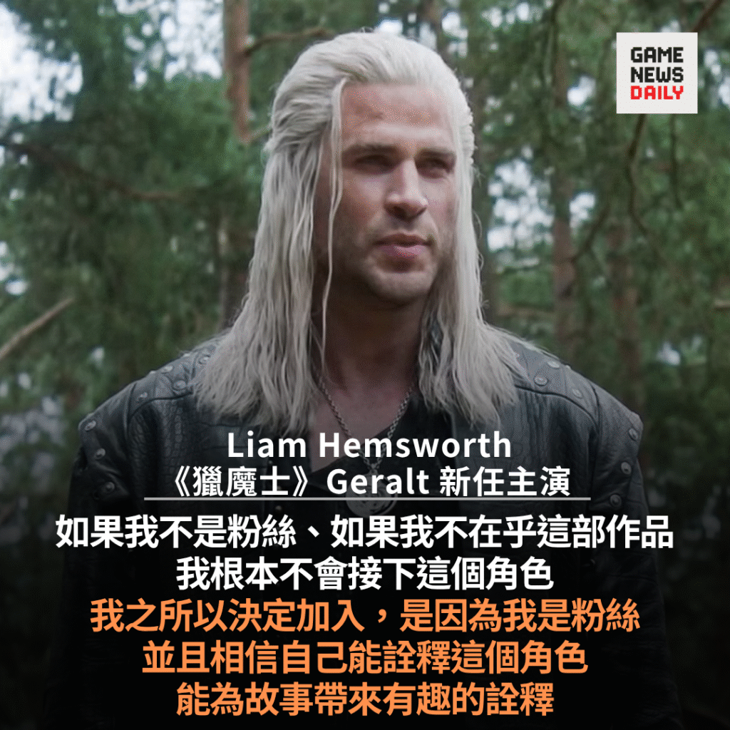 綜合外媒報道,Hemsworth 表示,當初接獲邀請時「相當猶豫」,並有許多顧慮和疑問,「我本來是遊戲的忠實玩家,後來也看了劇集並成為粉絲,還閱讀了原著小說。」被問及為何感到猶豫時,他指出,主要是因為該劇已有熱情的觀眾群,而 Henry Cavill 的演出亦深受喜愛,「我非常尊重這些粉絲,也感謝他們對作品的投入。」