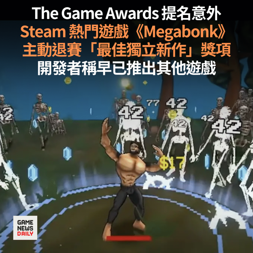 【GameNewsDaily】Steam 遊戲《Megabonk》近日入圍 The Game Awards「最佳獨立新作」獎項,但其官方帳號於 11 月 18 日公開宣布,基於作品並非開發者的首部獨立遊戲,已正式撤回參與資格。